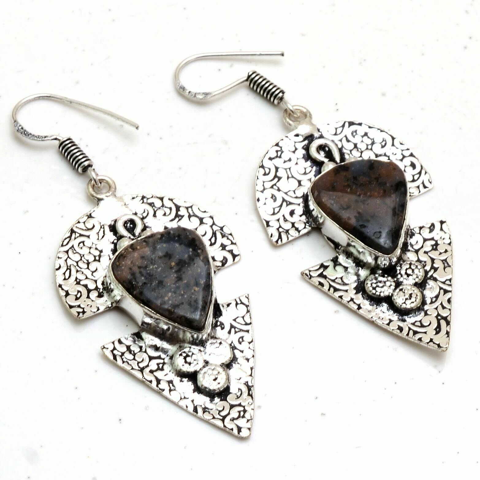Χειροποίητα, ινδικά σκουλαρίκια κατασκευασμένα από μασίφ ασήμι 925 και διακοσμημένα με υπέροχο πολύτιμο λίθο,ορυκτό Δενδρίτη του μελιού!