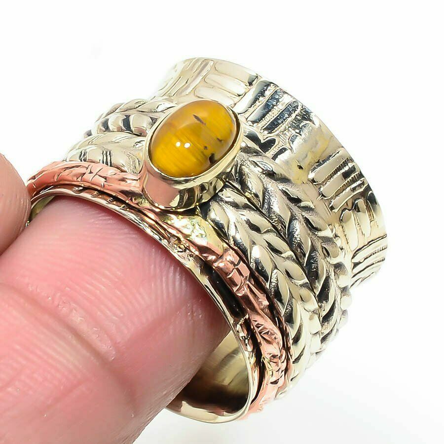 Δαχτυλίδι Spinner Rings, χειροποίητο, κατασκευασμένο από ασήμι 925, διακοσμημένο με φυσικό, ορυκτό, ημιπολύτιμο λίθο μάτι της τίγρης. (Προσφέρει υγεία, θάρρος και δύναμη για μια πιο ενεργητική αντιμετώπιση της ζωής). Mε επιμετάλλωση στα δυο χρώματα του χρυσού ροζ και λευκού.