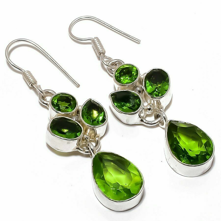 Κρεμαστά, χειροποίητα σκουλαρίκια κατασκευασμένα από ασήμι 925 με vintage αισθητική! Διακοσμημένα με πολύτιμα ορυκτά (peridot) Περιδοτίτης σε κοπή οβάλ και round. Τα σκουλαρίκια έχουν μήκος 2,5 εκατοστά.