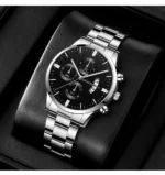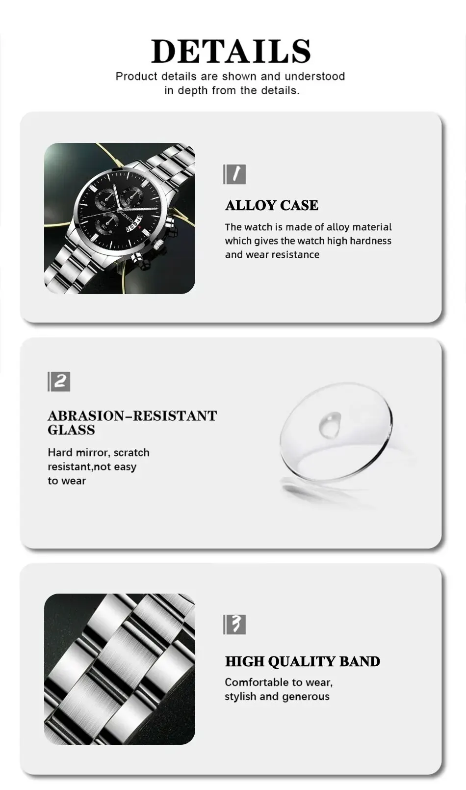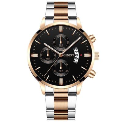 Αναλογικό ρολόι GENEVA, πολυτελείας, μαύρο καντράν με silver λεπτομέρειες και silver δείκτες λεπτών και ώρας, ενώ διαθέτει και ένδειξη ημερομηνίας. Το μπρασελέ σε χρώμα silver από ανοξείδωτο ατσάλι. Διάμετρος καντράν 4,2 εκατοστά. Μήκος μπρασελέ περίπου 25 εκατοστά.