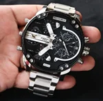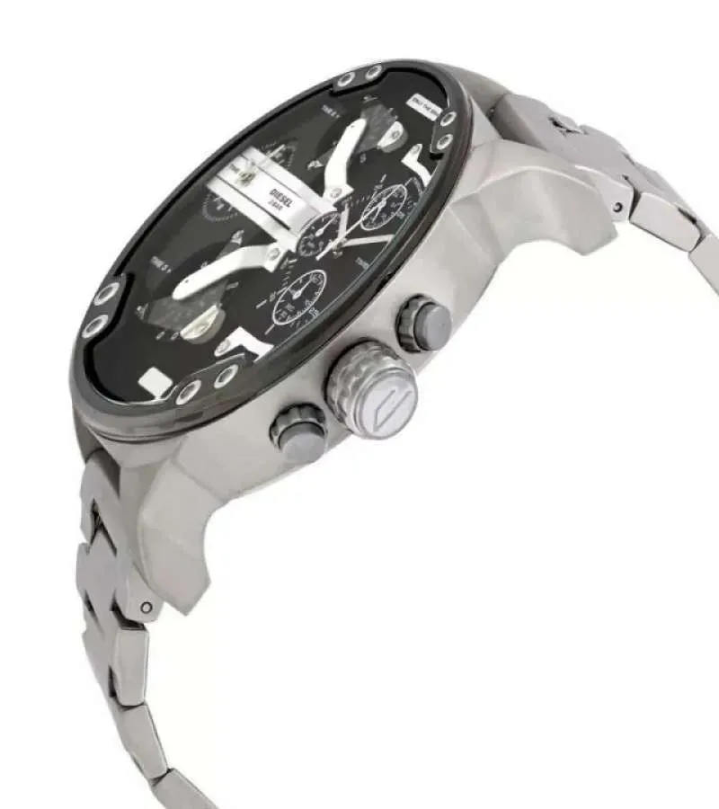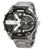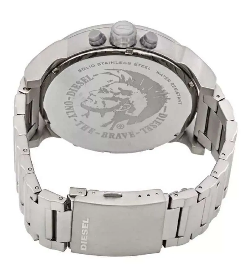 Ανδρικό, μοντέρνο και πρωτότυπο αναλογικό ρολόι τύπου DIESEL από ανοξείδωτο ατσάλι, με μαύρο καντράν και με silver λεπτομέρειες.