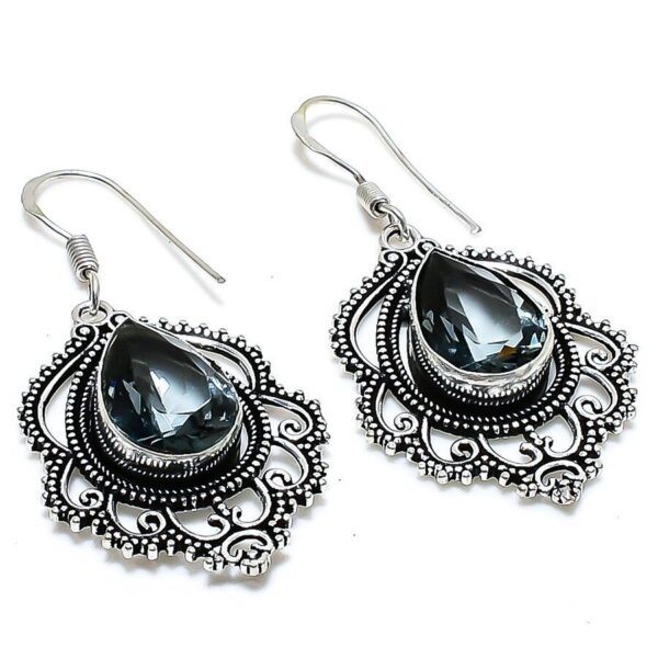 Χειροποίητα, σκουλαρίκια κατασκευασμένα από ασήμι 925 και φορούν ημιπολύτιμους λίθους. Διακοσμημένα με ορυκτούς λίθους Alexandrite Quartz (Αλεξανδρίτης χαλαζίας) εξαιρετικής καθαρότητας και λάμψης, σε κοπή pear. Tα σκουλαρίκια έχουν μήκος 5 εκατοστά.