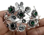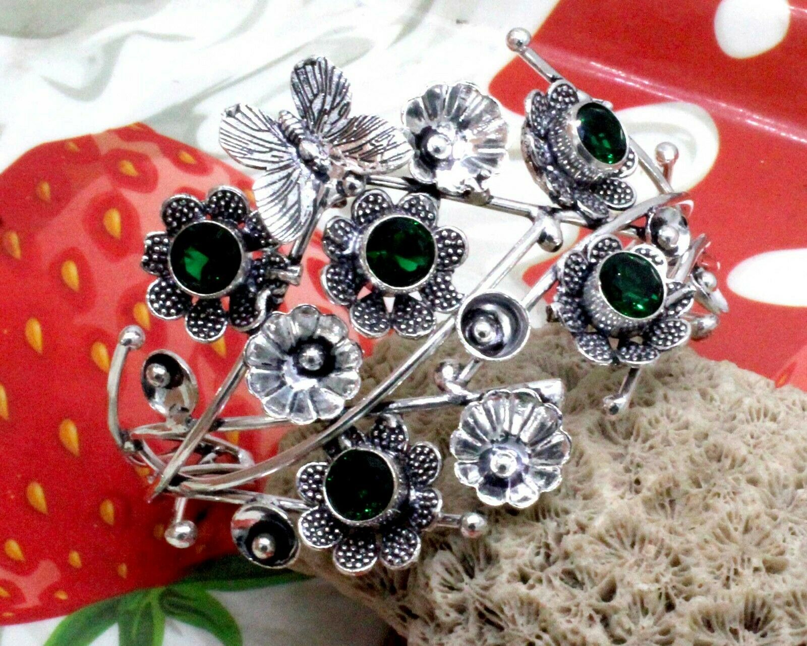 Χειροποίητο, ινδικό βραχιόλι κατασκευασμένο από ασήμι 925, διακοσμημένο με υπέροχους πράσινους λίθους Chrome Diopside (lab creation) σε κοπή round . Total Carat Weight (TCW): 120 CTS. Οpen Size για να προσαρμόζεται σε όλους τους καρπούς. Ένα πραγματικό αριστούργημα.