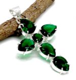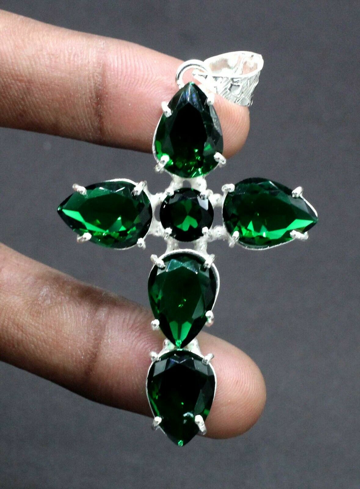 Iνδικός, χειροποίητος γυναικείος σταυρός, κατασκευασμένος από μασίφ ασήμι 925. Διακοσμημένος με καταπράσινες υπέροχες, λαμπερές πέτρες  Chrome Diopside  (Lab creation) διαστάσεων 5,5 χ 3,5 εκατοστά. Τιμή 55 ευρώ