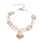 Bραχιόλι για τον αστράγαλο κατασκευασμένο από φυσικά λευκά κοχύλια δεμένα με βαμβακερό σπάγκο. Mήκος βραχιολιού 24cm 7.5cm το αλυσιδάκι προέκτασης.