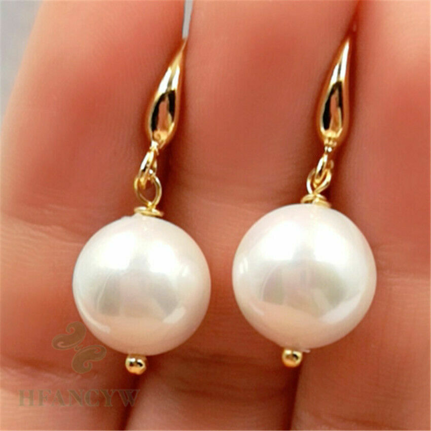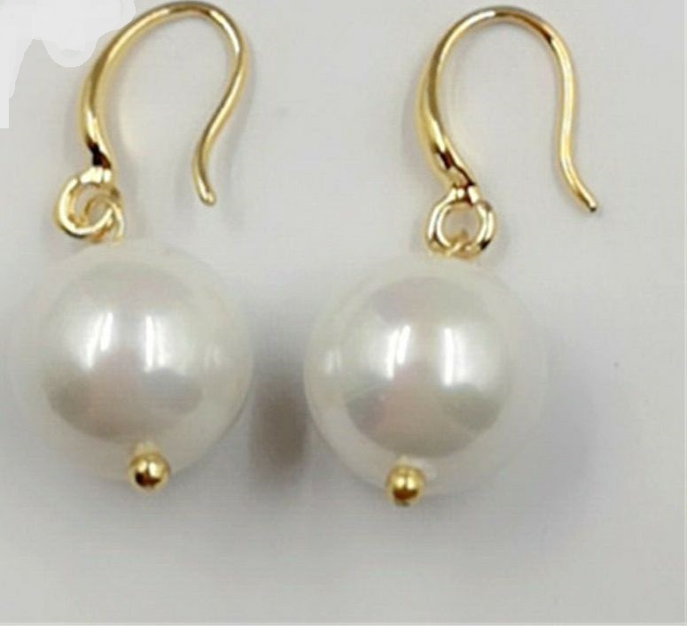 Σκουλαρίκια με μεγάλες και εντυπωσιακές λευκές πέρλες South Sea Shell 12mm, ποιότητας ΑΑΑ++, με επιμετάλλωση κίτρινου χρυσού 14Κ!