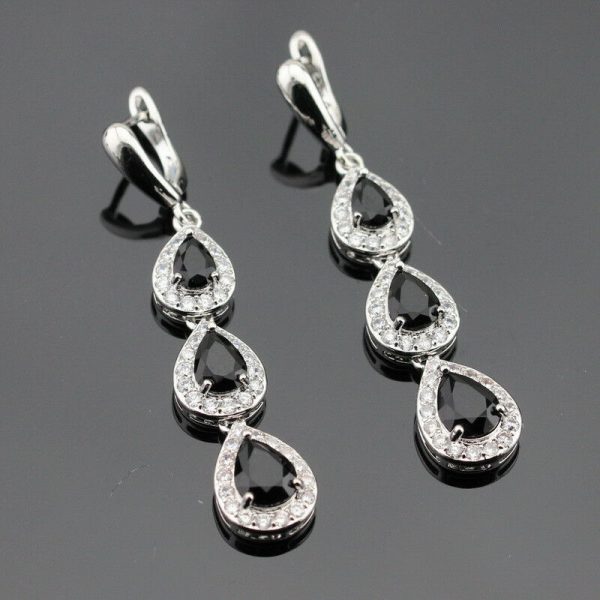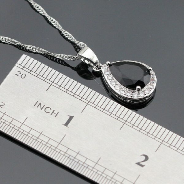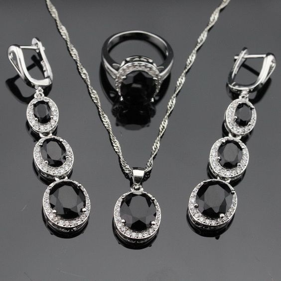 Κλασικό και διαχρονικό σετ, επάργυρο 925. Αποτελείται από μενταγιόν, σκουλαρίκια και δαχτυλίδι, διακοσμημένα με μαύρα συνθετικά ζαφείρια. Συνοδεύεται από αλυσίδα 55cm.