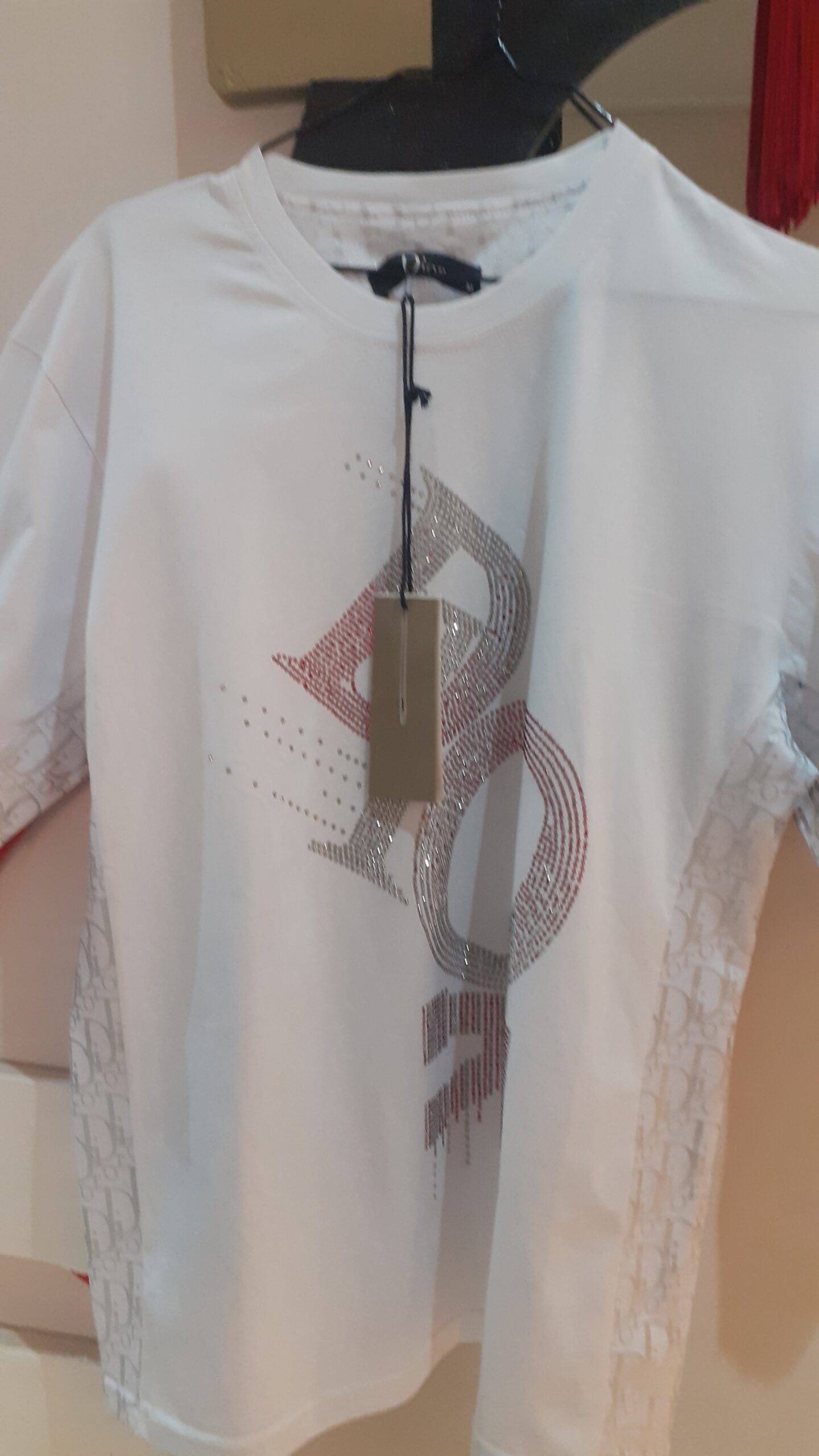 DIOR T-Shirt Λευκό, με στρας το λογότυπο έτσι ώστε να μπορείτε να το σιδερώνετε.