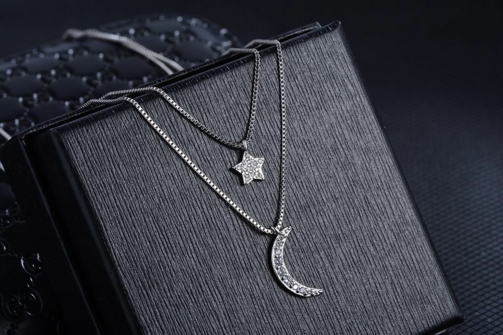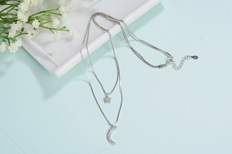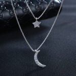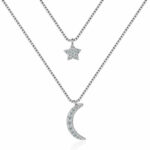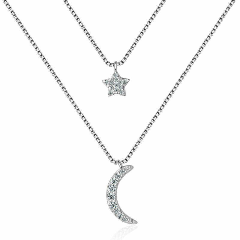 Διπλό κολιέ ασημένιο 925, διακοσμημένο με λευκά ζιργκόν, με μοτίφ το μισοφέγγαρο και ένα αστέρι!!