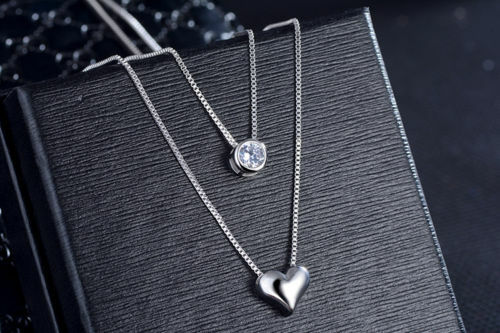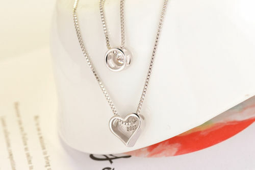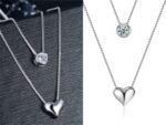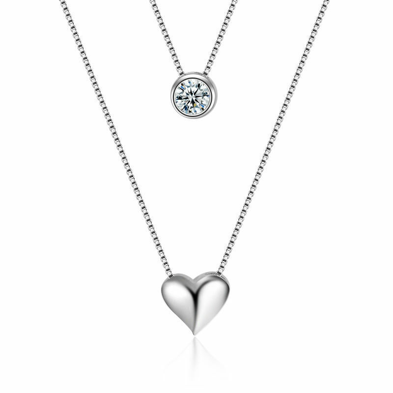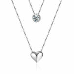Διπλό κολιέ, ασημένιο 925, διακοσμημένο στο ένα μάκρος του με ένα λευκό ζιργκόν σε κοπή round και στο δεύτερο μάκρος του μοτίφ μια καρδιά!