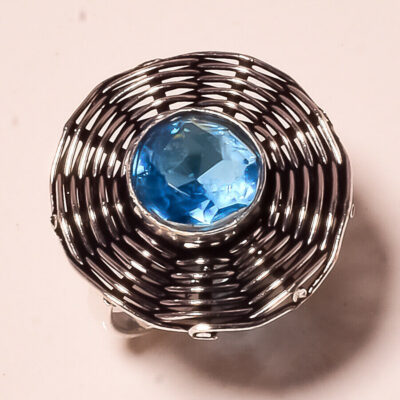 Χειροποίητο δαχτυλίδι, από ασήμι 925, με ορυκτή, πολύτιμη πέτρα blue topaz