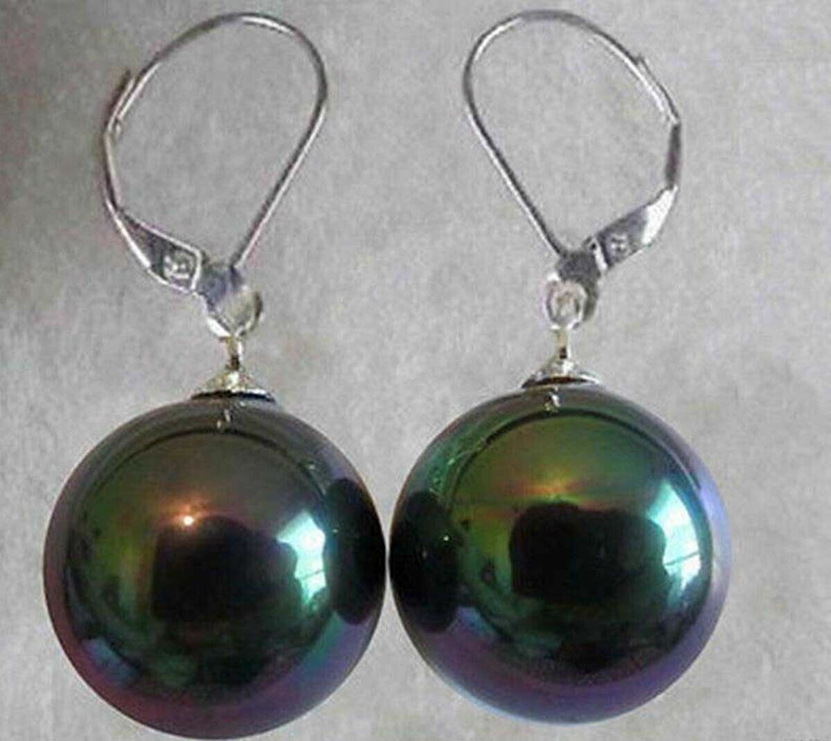 Yπέροχα γυναικεία σκουλαρίκια διακοσμημένα με μεγάλες, εντυπωσιακές south sea shell πέρλες 14mm σε μαύρο χρώμα, ΑΑΑ ποιότητας, με ασημένιο δέσιμο.