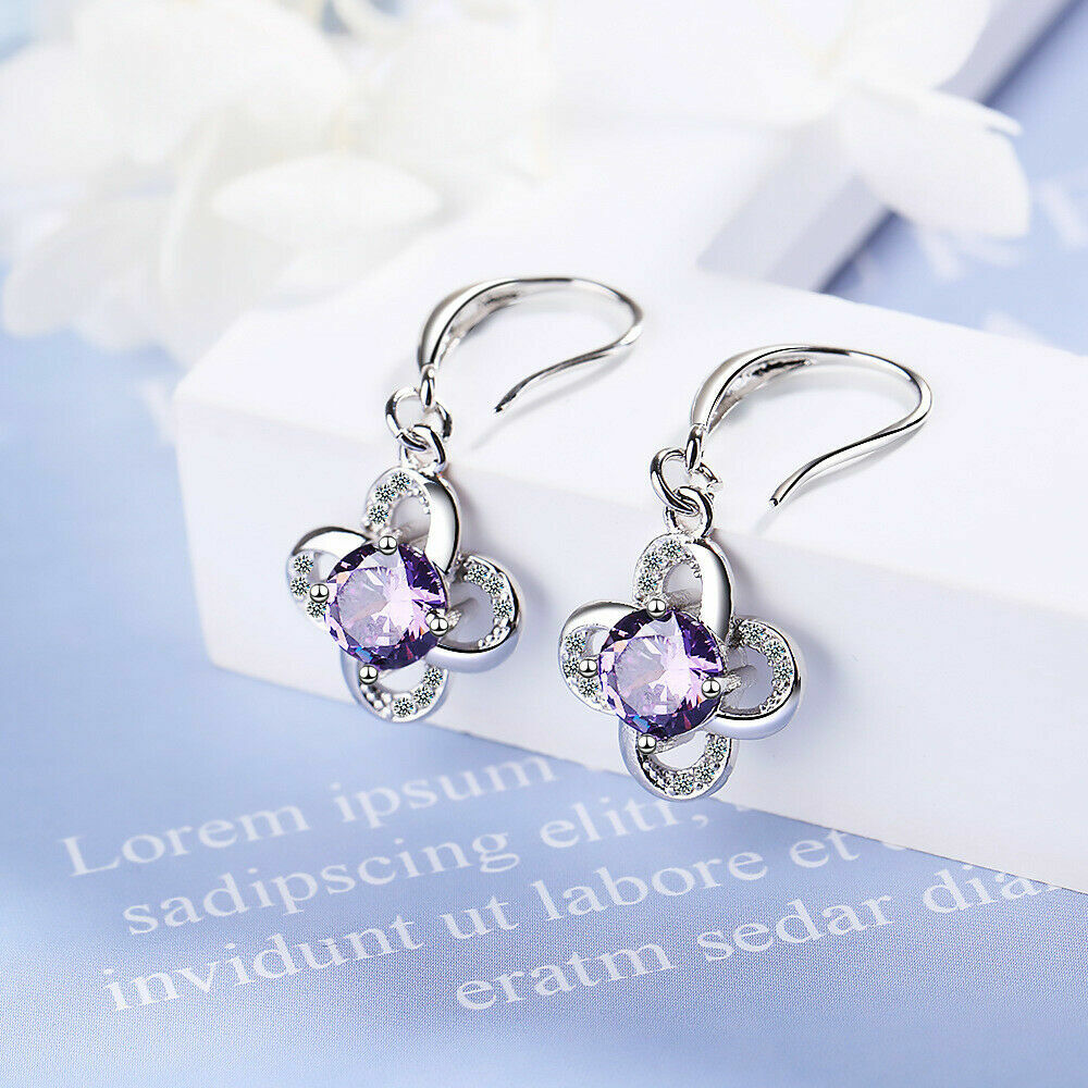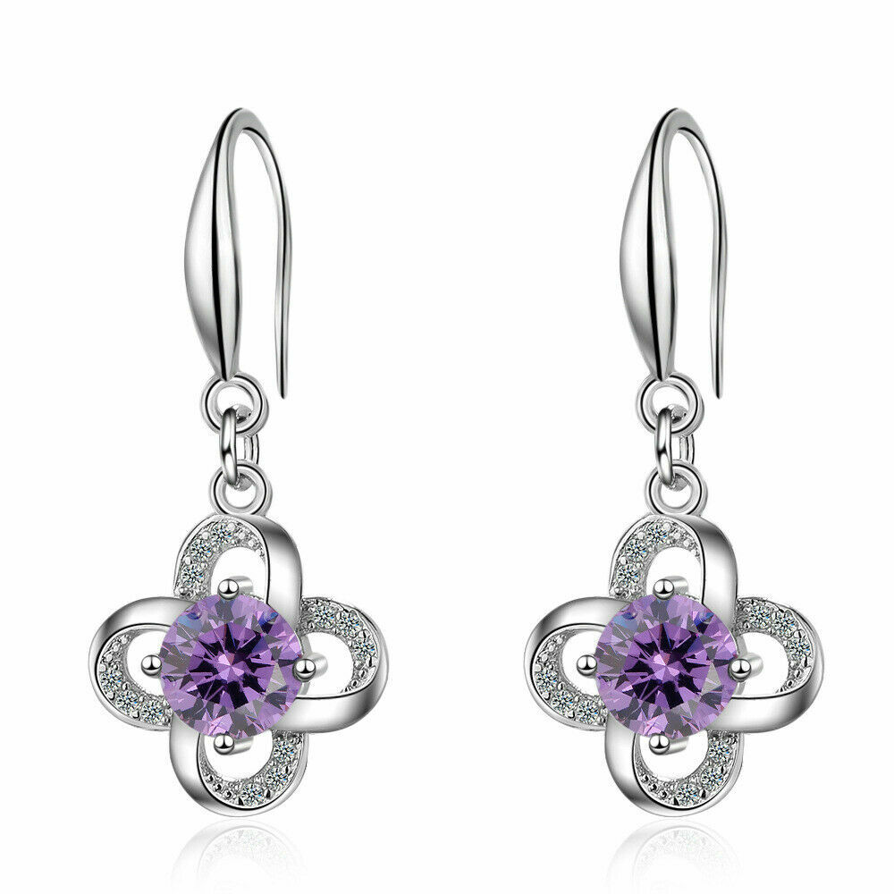 Κατασκευασμένα από ασήμι 925 και διακοσμημένα με μωβ κρύσταλλο σε κοπή round brilliant και λευκά ζιργκόν περιμετρικά σε κοπή round. (24mm x 9mm)