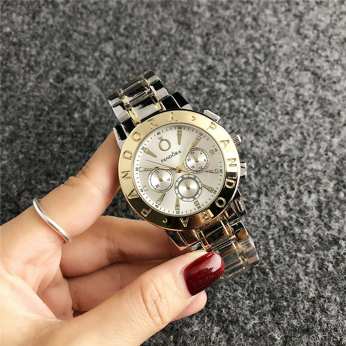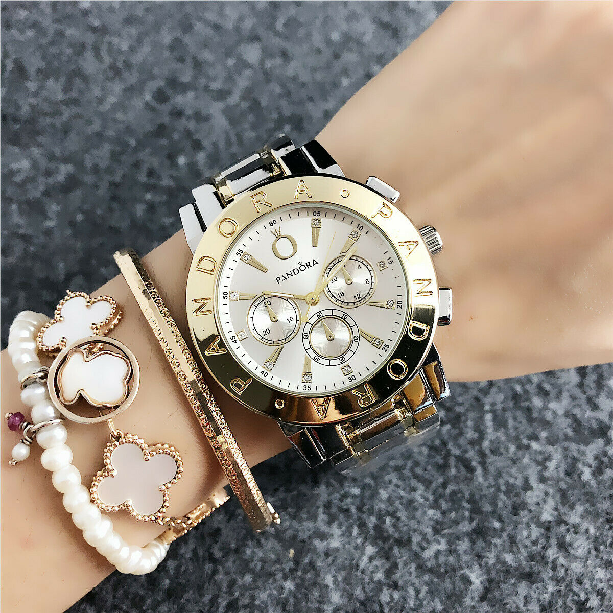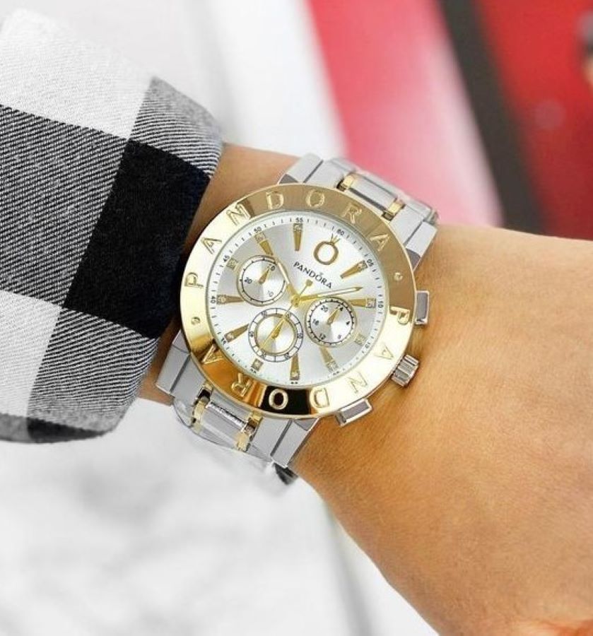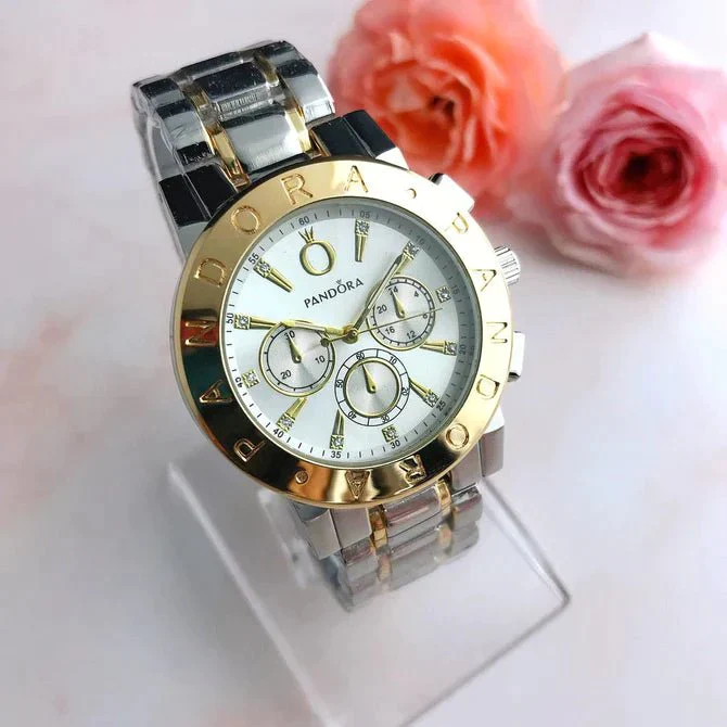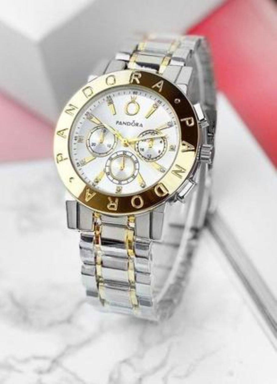 Γυναικείο ρολόι πολυτελείας PANDORA, αναλογικό, πολύ μοντέρνο, σε silver-gold χρώμα σε μπρασελέ και καντράν από ανοξείδωτο ατσάλι υψηλής αντοχής και ποιότητας για καθημερινή χρήση και με ενισχυμένο αντιθαμβωτικό τζάμι στο καντράν του! Αντιαλλεργικό, σύμφωνα με τις απαιτήσεις της Ευρωπαϊκής Ένωσης!
