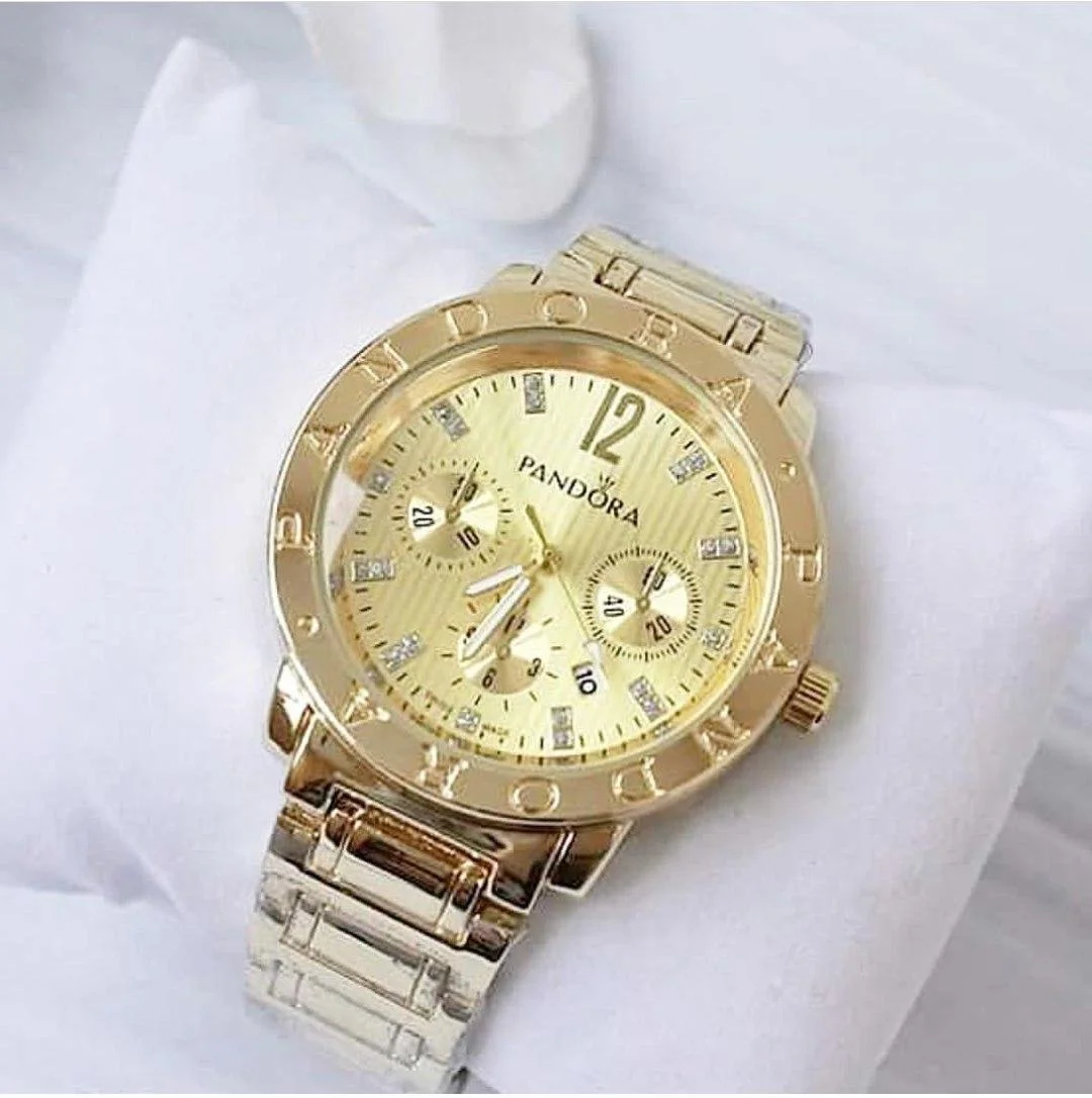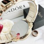 Γυναικείο ρολόι πολυτελείας PANDORA, αναλογικό, πολύ μοντέρνο, σε gold χρώμα σε μπρασελέ και καντράν από ανοξείδωτο ατσάλι υψηλής αντοχής και ποιότητας για καθημερινή χρήση και με ενισχυμένο, αντιθαμβωτικό, ορυκτό κρύσταλλο στο καντράν του! Αυστραλιανά κρύσταλλα κοσμούν το εσωτερικό του! Αντιαλλεργικό, σύμφωνα με τις απαιτήσεις της Ευρωπαϊκής Ένωσης! Διαθέτει και ένδειξη ημερομηνίας!