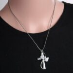 Γυναικείος σταυρός με λευκά κρύσταλλα σε κοπή heart, κατασκευασμένος από ανοξείδωτο ατσάλι. Συνοδεύεται από αλυσίδα 45 εκατοστών + 5 εκατοστά το αλυσιδάκι προέκτασης στο πίσω μέρος. Ο σταυρός έχει διαστάσεις 4,2 εκατοστά χ 3,7 εκατοστά και ζυγίζει 13 γραμμάρια.