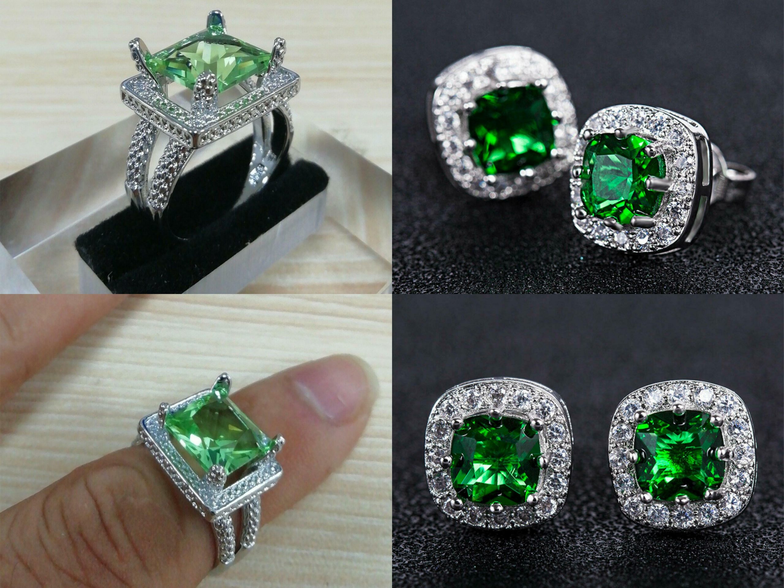 Για σας που αγαπάτε το πράσινο, λαμπερά σκουλαρίκια κατασκευασμένα από nickel Silver, διακοσμημένα με πράσινο κρύσταλλο σε κοπή Asscher 6mm και λευκά ζιργκόν σε κοπή rude!