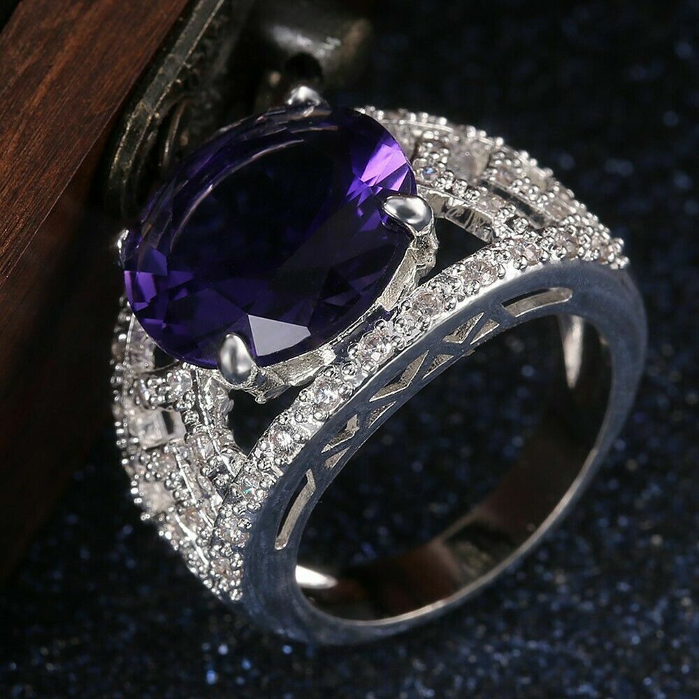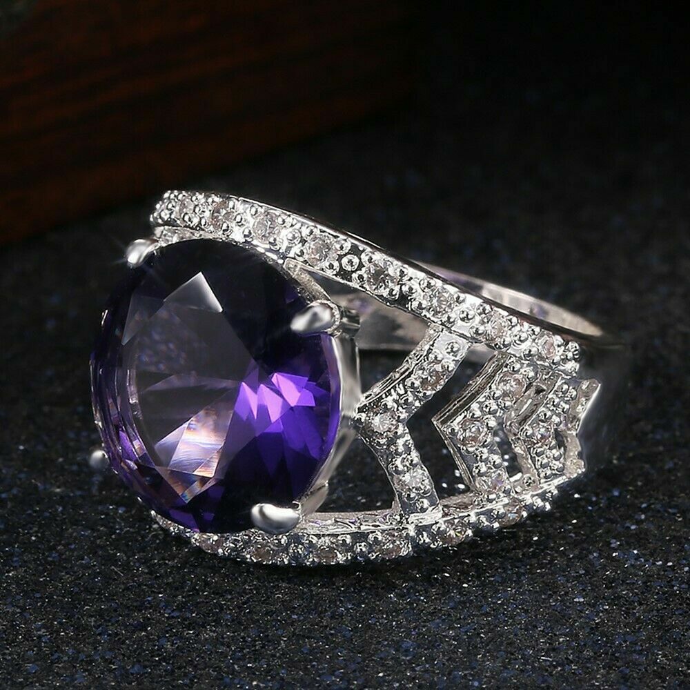 Για εσάς που αγαπάτε τα πληθωρικά, μεγάλα δαχτυλίδια σας προτείνουμε ένα κομψό επάργυρο 925, δαχτυλίδι. Διακοσμημένο με αμέθυστο (Lab-Created) σε κοπή round και μικρά λευκά ζαφείρια επίσης σε κοπή round (Lab-Created) στη γάμπα του.