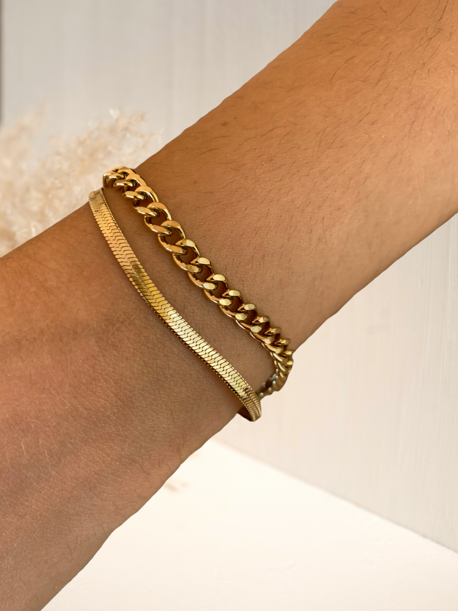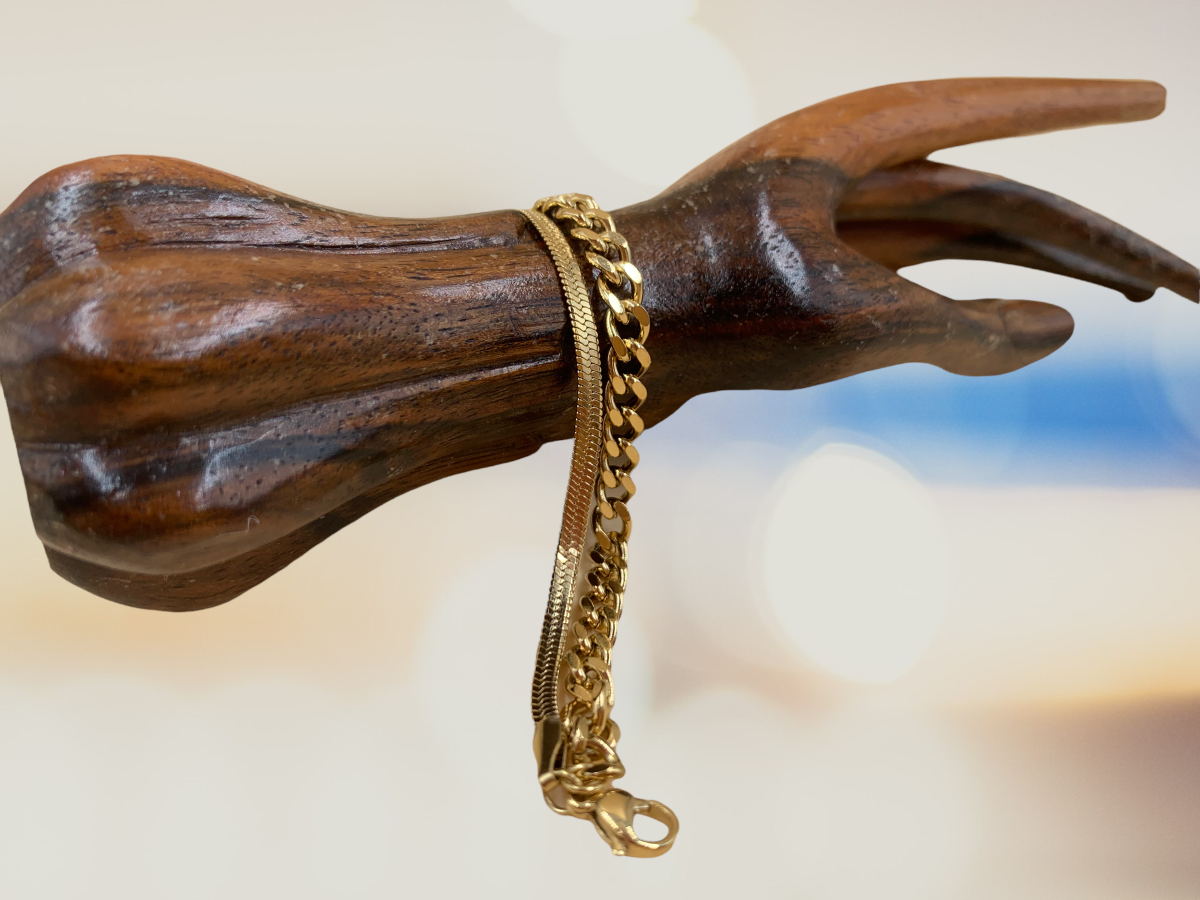 Συνοδεύεται από Δύο Καταπληκτικά, μοντέρνα βραχιόλια, κατασκευασμένα από ανοξείδωτο ατσάλι, διπλή επιμετάλλωση κίτρινου χρυσού. Τα βραχιόλια διαθέτουν αλυσιδάκι προέκτασης για να εφαρμόζουν σε όλους τους καρπούς Αντιαλλεργικα, σύμφωνα με τις απαιτήσεις της Ευρωπαϊκής Ένωσης!
