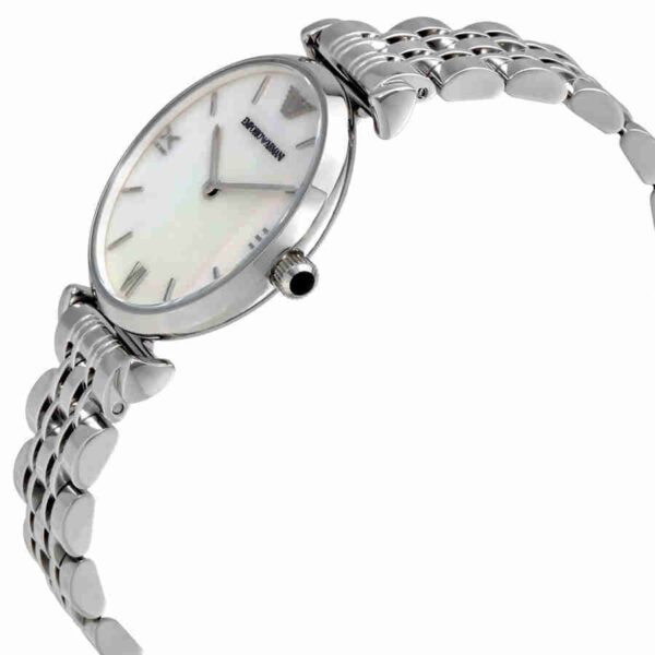 Emporio Armani Modern Slim Stainless Steel Bracelet. Ένα κομψό θηλυκό ρολόι, του οίκου Emporio Armani, της σειράς Modern Slim. Με κάσα διαμέτρου 32 mm και μπρασελέ, από ανοξείδωτο ατσάλι. Το εντυπωσιακό ασημί καντράν, διαθέτει το λογότυπο του οίκου, προσφέροντας μας έτσι, ένα εξαιρετικό σχέδιο.