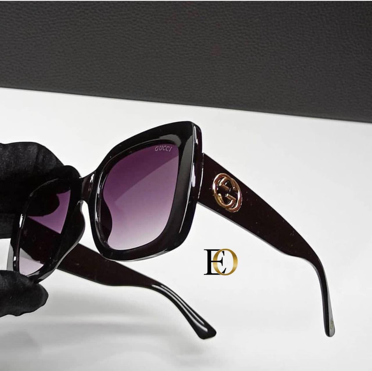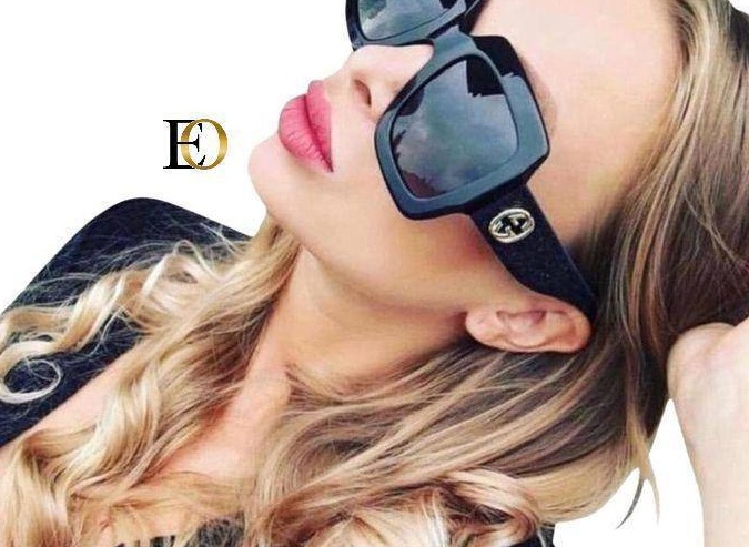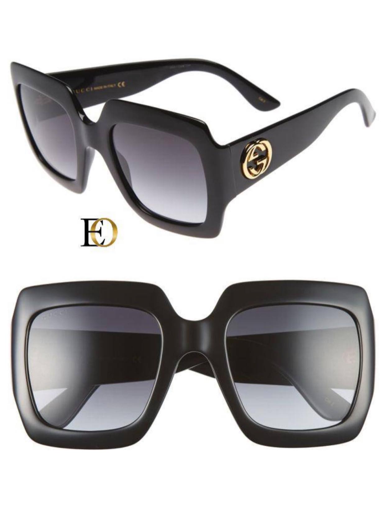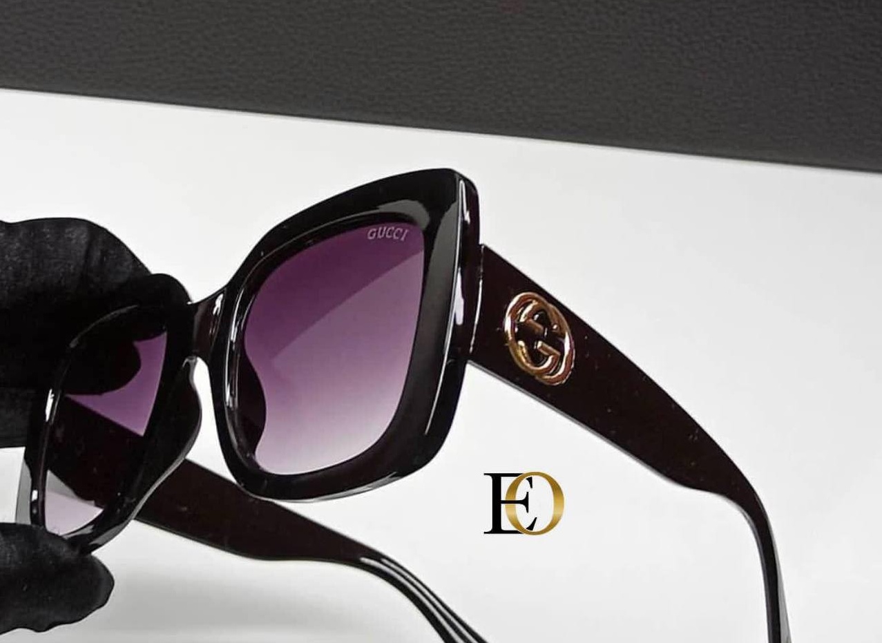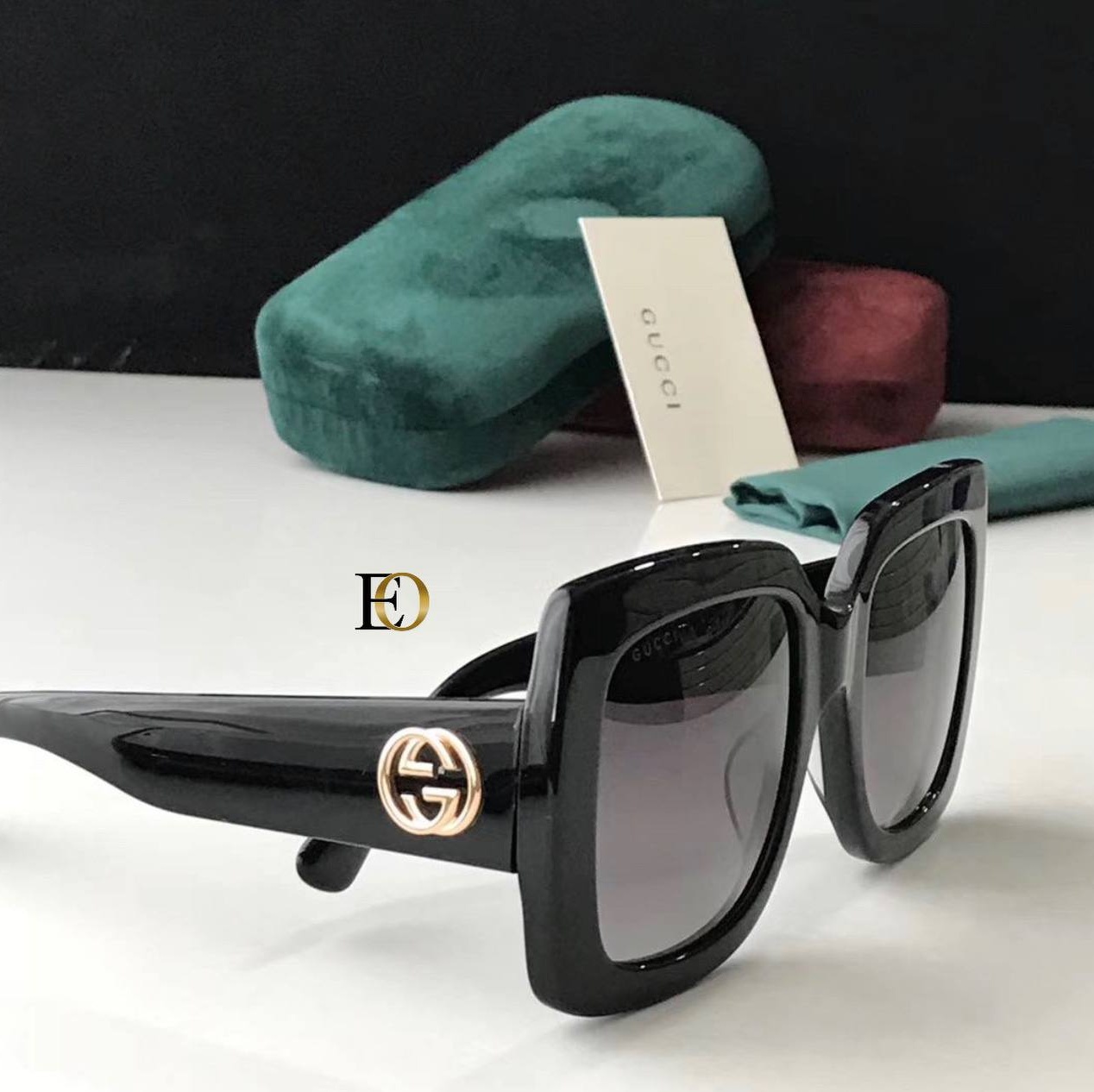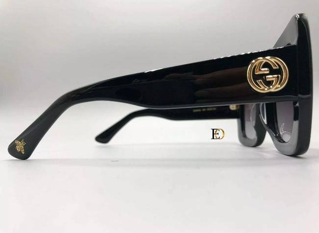 Γυναικεία γυαλιά ηλίου GUCCI  τύπου Oversized Gucci. Ο σκελετός των γυαλιών ηλίου GUCCI  είναι κοκάλινος σε μαύρο χρώμα. Στον φακό υπάρχει διακριτικά χαραγμένο το όνομα της εταιρείας και το λογότυπο της GUCCI στους βραχίονες.