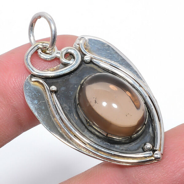 Χειροποίητo ινδικό μενταγιόν. Κατασκευασμένο από ασήμι 925. Διακοσμημένο με 100% φυσική, ορυκτή, πέτρα χαλαζία καπνιά (Smokey Quartz) σε κοπή oval, σε αυτό το όμορφο χρώμα Coffee dark. Διαστάσεις μενταγιόν 4,50 cm.