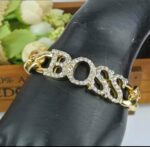 Βραχιόλι σε χρυσό χρώμα BOSS εξαιρετικής ποιότητας και μοναδικού design! Κατασκευασμένο από ανοξείδωτο ατσάλι με επιμετάλλωση κίτρινου χρυσού 14Κ. Διακοσμημένo με μικρά και διακριτικά λευκά ζιργκόν σε κοπή round. Διαθέτει αλυσιδάκι προέκτασης για να εφαρμόζει σε όλους τους καρπούς.