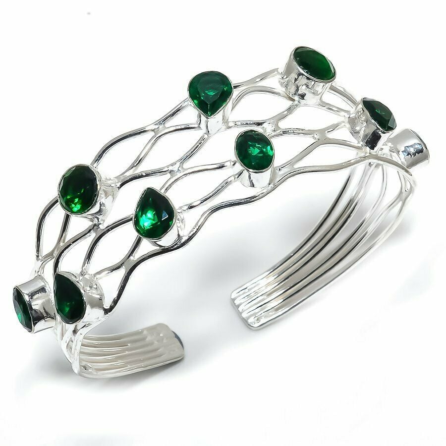 Χειροποίητο, ινδικό βραχιόλι κατασκευασμένο από ασήμι 925, διακοσμημένο με λίθους Chrome Diopside, (Διοψίδιος) (lab creation) σε κοπή oval και pear.