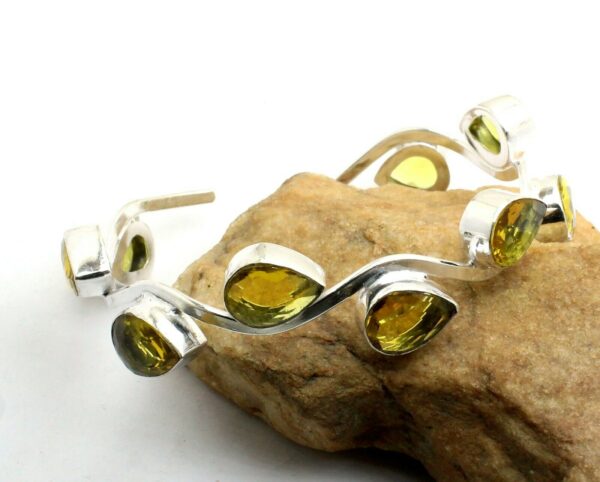 Χειροποίητο, ινδικό βραχιόλι κατασκευασμένο από ασήμι 925, διακοσμημένο με λίθους citrine (lab creation) σε κοπή pear.