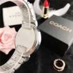 Γυναικείο ρολόι COACH, αναλογικό, πολύ μοντέρνο, σε rose-gold χρώμα με δίχρωμο μπρασελέ!! Εξαιρετικός σχεδιασμός με μοντέρνο και πρωτότυπο σχεδιασμό στο εσωτερικό του. Το καντράν είναι από ανοξείδωτο ατσάλι. Eκθεσιακό κομμάτι βιτρίνας καταστήματος προηγούμενης σεζόν χωρίς την αρχική του συσκευασία. Αδιάβροχο μέχρι 3 Atm (πλύσιμο χεριών). Διάμετρος καντράν στα 4,2 εκατοστά.
