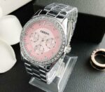 Υπέροχο και μοναδικό αναλογικό ρολόι πολυτελείας FOSSIL , σε silver χρώμα στο μπρασελέ και ροζ χρώμα στο καντράν. Η κάσα του λιτά διακοσμείται περιμετρικά με λευκά ζιργκόν εξαιρετικής καθαρότητας και ποιότητας σε κοπή round! Διάσταση καντράν 38.7 mm! Το ρολόι είναι κατασκευασμένο από ανοξείδωτο ατσάλι!