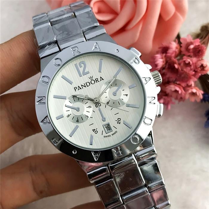 Γυναικείο ρολόι πολυτελείας PANDORA, αναλογικό, πολύ μοντέρνο, σε silver χρώμα σε μπρασελέ και καντράν από ανοξείδωτο ατσάλι υψηλής αντοχής και ποιότητας για καθημερινή χρήση και με ενισχυμένο αντιθαμβωτικό τζάμι στο καντράν του! Αντιαλλεργικό, σύμφωνα με τις απαιτήσεις της Ευρωπαϊκής Ένωσης! Διαθέτει και ένδειξη ημερομηνίας!