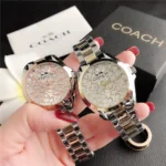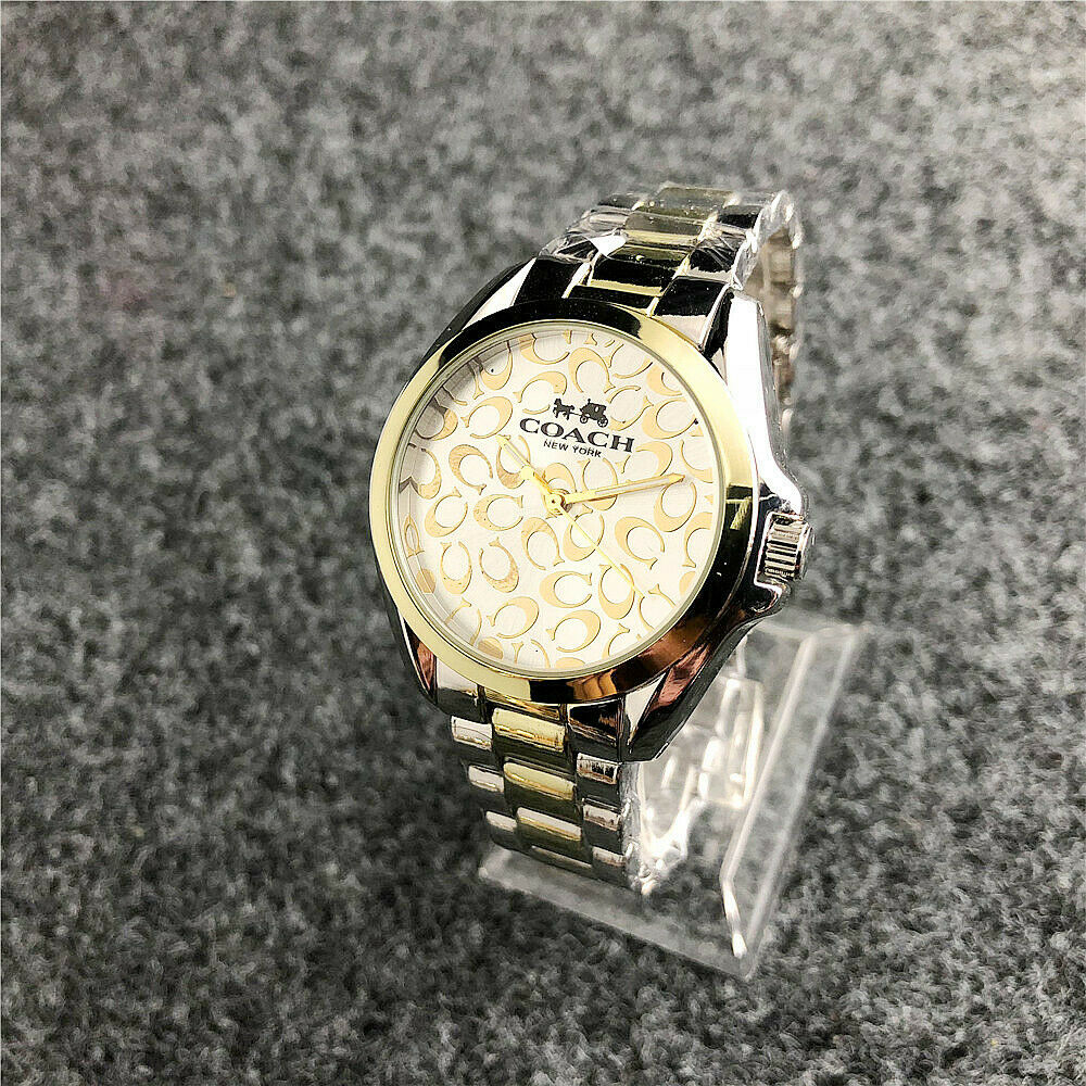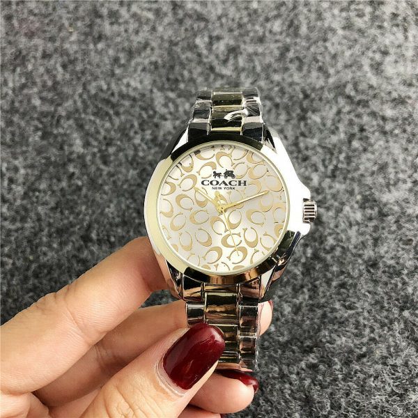 Γυναικείο ρολόι COACH Luxury, αναλογικό, silver-gold, αδιάβροχο μέχρι 3 Atm (πλύσιμο χεριών)! Το μπρασελέ αλλά και το καντράν είναι από ανοξείδωτο ατσάλι! Πολυτελής σχεδιασμός στο εσωτερικό του καντράν! Εκθεσιακό κομμάτι βιτρίνας καταστήματος, προηγούμενης σεζόν χωρίς την αρχική του συσκευασία. Διάμετρος καντράν 3,8 εκατοστά! Απαράμιλλη τελειότητα και ομορφιά στο χέρι σας!