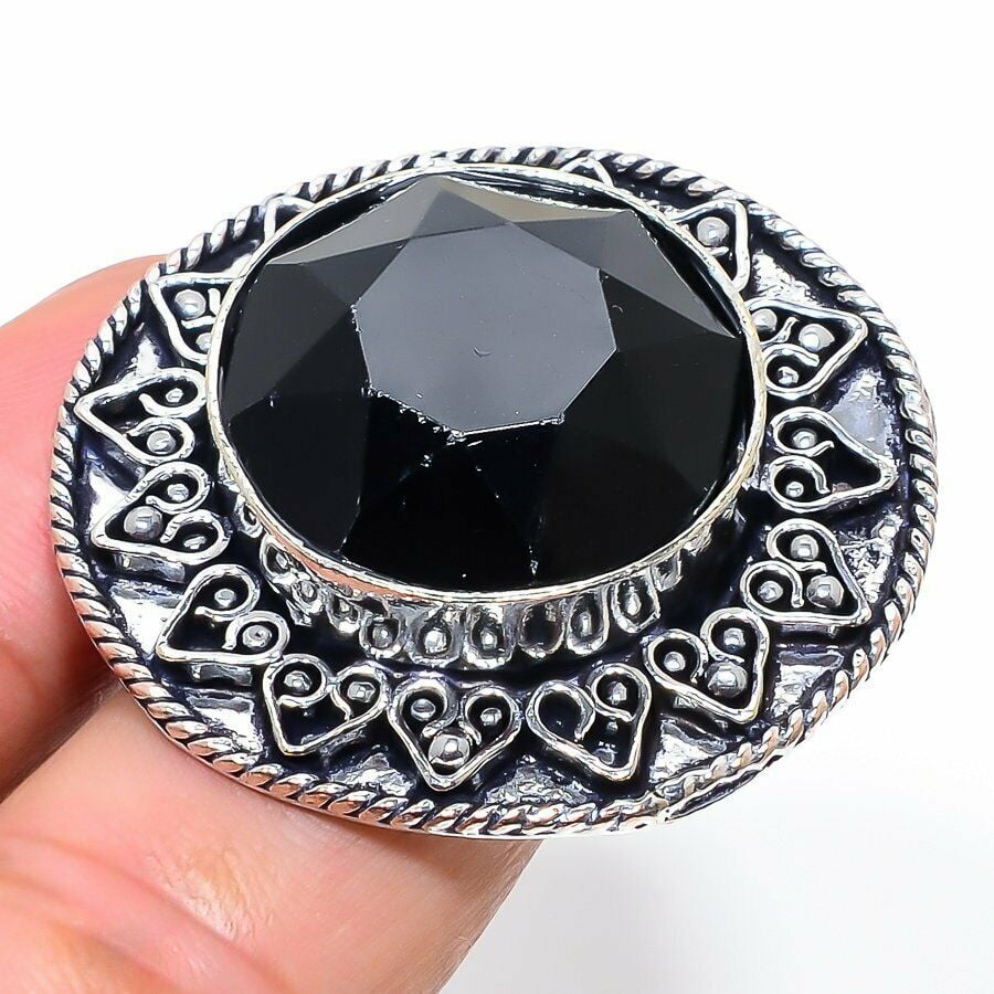 Δαχτυλίδι χειροποίητο κατασκευασμένο από ασήμι 925 διαστάσεις δαχτυλιδιού 4,4χ4,4 cm. Διακοσμημένο με έναν ακαταμάχητης ομορφιάς ορυκτό πολύτιμο Μαύρο Όνυχα – Black Onyx σε κοπή round.