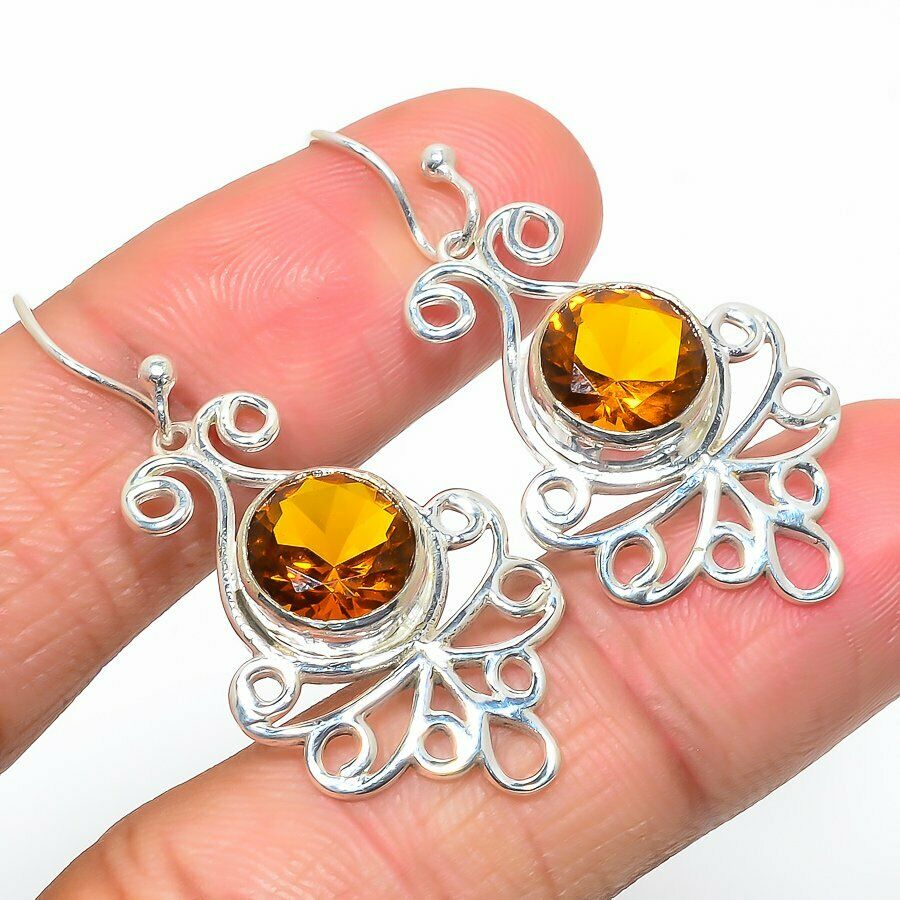 Χειροποίητα ινδικά σκουλαρίκια, κατασκευασμένα από ασήμι 925. Διακοσμημένα με πέτρα Citrine (lab creation) σε κοπή round.