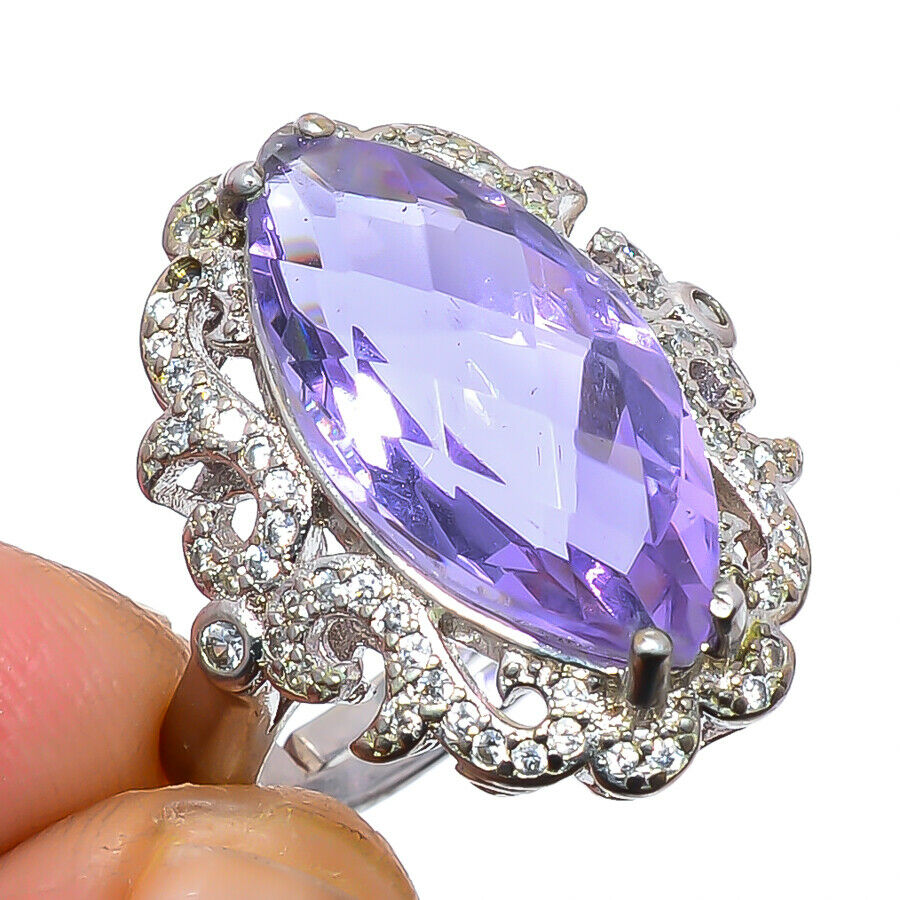 Χειροποίητο ινδικό δαχτυλίδι, κατασκευασμένο από ασήμι 925. Διακοσμημένο με πέτρα Αλεξανδρίτη (Alexandrite) (lab creation) σε κοπή oval και περιμετρικά με μικρότερες πολύτιμες πέτρες λευκού τοπάζ (lab creation). Ένα Open Size δαχτυλίδι!