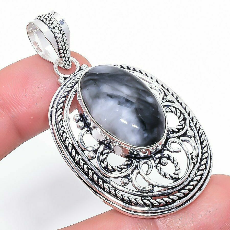 Χειροποίητο μενταγιόν κατασκευασμένο από μασίφ ασημί 925 διακοσμημένο με μία υπέροχη ορυκτή ημιπολύτιμη πέτρα Ocean Fume Opal. Το μενταγιόν έχει μήκος 5,8 cm.