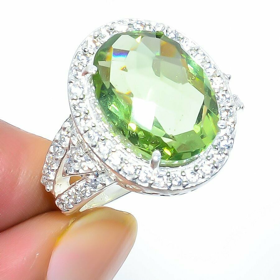 Δαχτυλίδι χειροποίητο κατασκευασμένο από ασήμι 925 διακοσμημένο με έναν ακαταμάχητης ομορφιάς πράσινο αμέθυστο (lab creation) σε κοπή oval, και λευκά ζιργκόν περιμετρικά από το στεφάνι σε κοπή round!