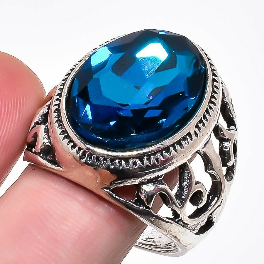 Χειροποίητο δαχτυλίδι κατασκευασμένο από Tibetan silver σε έθνικ στυλ και διακοσμημένο από υπέροχη μπλε, ορυκτή, εξαιρετική, Τουρμαλίνη εντολίτη σε κοπή οβάλ (νούμερο 19).