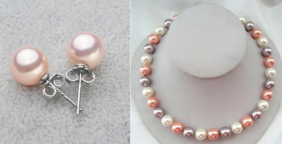 Άκρως θηλυκό σετ κολιέ και σκουλαρίκια ασημένια με round multicolor south sea shell πέρλες 8mm class ΑΑΑ+ δεμένες με διπλό μεταξωτό νήμα!