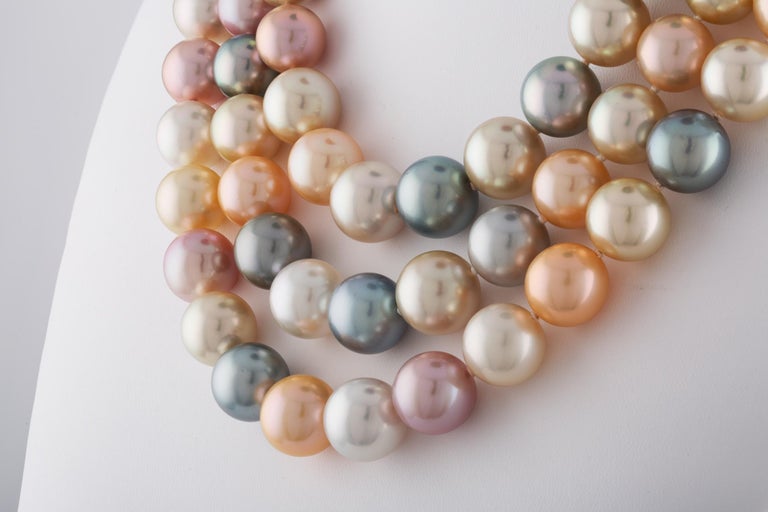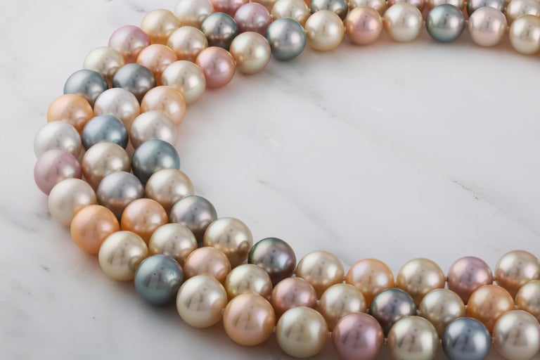 Οι πέρλες σε όλο τους το μεγαλείο!! Τα μαργαριτάρια είναι συνώνυμα της κομψότητας και του στυλ, ένα εντυπωσιακό κολιέ εξαιρετικής ποιότητας, με multicolor genuine natural sea shell πέρλες AAA++ στα 10 mm. Δεμένες μία-μία χωριστά σε διπλό μεταξωτό νήμα, μήκος κολιέ στα 92 εκατοστά, για να μπορείτε να το φοράτε και διπλό!! Πέρλες η απογείωση της θηλυκότητας!!