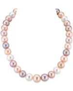 Ένας εξαιρετικός συνδυασμός από λαμπερά λευκά, ροδακινί και ροζ μαργαριτάρια. Αριστης ποιότητας shell Pearl διαμέτρου 10 χιλιοστών σε σχήμα Round (στρογγυλό). Διαθέτει κούμπωμα ασφαλείας, σε χρυσό. Είναι δεμένο με μεταξωτό νήμα που δημιουργεί κόμπους ενδιάμεσα στα μαργαριτάρια για λόγους προστασίας και ασφάλειας. Το μήκος του είναι 49 εκατοστά.
