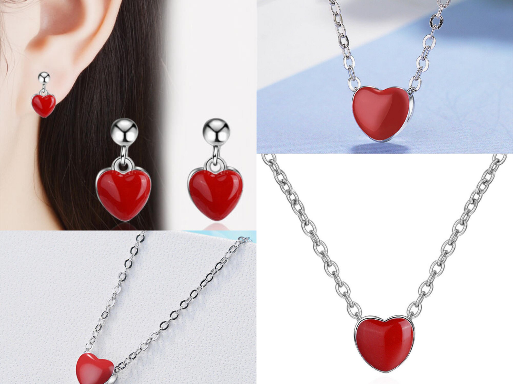 Υπέροχο σετ κοσμημάτων που αποτελείται από μενταγιόν, βραχιόλι και σκουλαρίκια. Κατασκευασμένα από ασήμι 925 και διακοσμημένα με μία κατακόκκινη καρδιά (μέγεθος μοτίφ: 8MMx8MM).