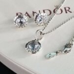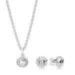 Υπέροχο επώνυμο γυναικείο σετ Pandora σκουλαρίκια μαζί με μενταγιόν (συνοδεύεται από αλυσίδα 45cm). Κατασκευασμένο από ανοξείδωτο ατσάλι έτσι ώστε να μένει αμετάβλητο στο χρόνο. Διακοσμημένο με αυστραλιανά λευκά κρύσταλλα σε κοπή round. (Εκθεσιακά κομμάτια βιτρίνας καταστήματος χωρίς στην αρχική τους συσκευασία!)