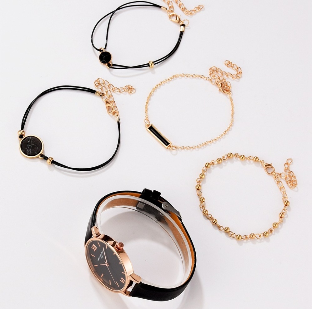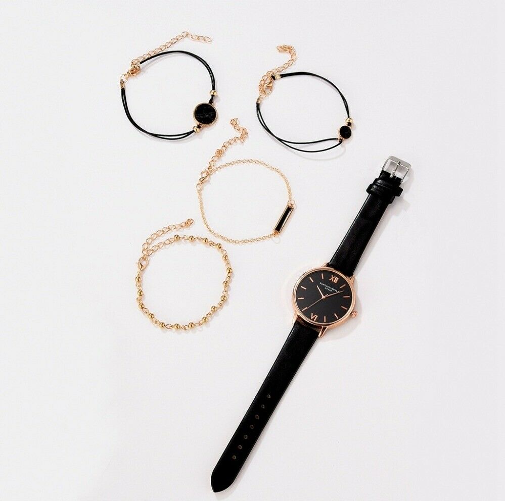 Υπέροχο γυναικείο ρολόι που συνοδεύεται με ένα σετ 4 μοντέρνων βραχιολιών!