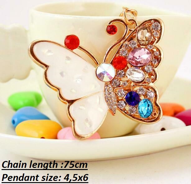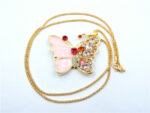 Eντυπωσιακό, μεγάλο μενταγιόν πεταλούδα σχεδιασμένο από την,betsey Johnson, κατασκευασμένο από German Silver. Διακοσμημένο με λαμπερά κρύσταλλα σε κοπή round, με λεπτομέρειες από σμάλτο. Το μενταγιόν συνοδεύεται από χοντρή snake αλυσίδα που καταλήγει σε καρδιά με το λογότυπο της σχεδιάστριας. Μήκος αλυσίδας 70 εκατοστών και διαστάσεις μοτίφ 4,5 χ 6 εκατοστά.