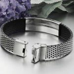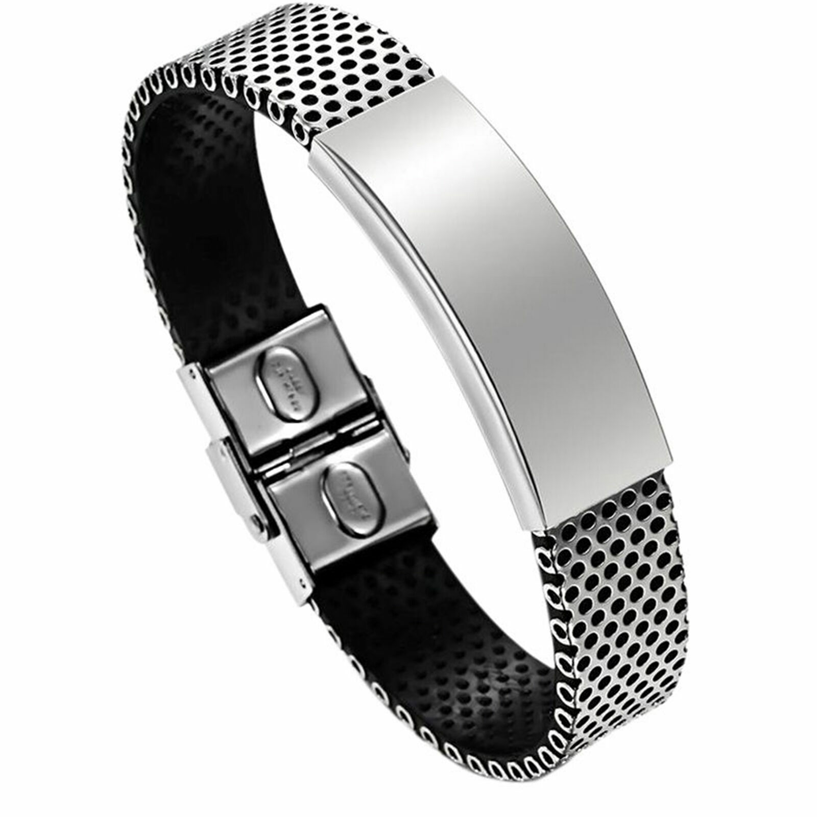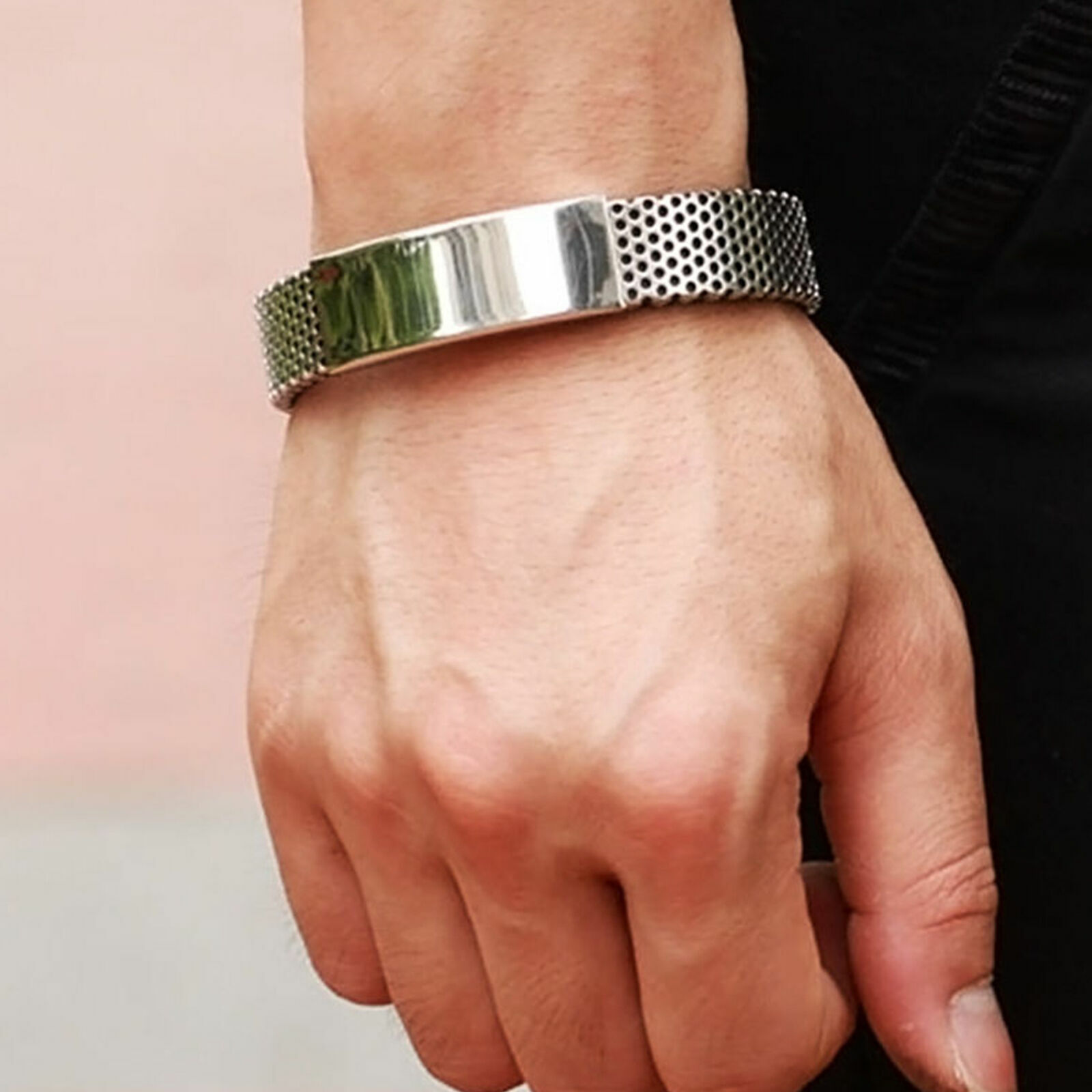 Ανδρικό βραχιόλι κατασκευασμένο από ανοξείδωτο ατσάλι και δέρμα εσωτερικά, υποαλλεργικό, στιλβωμένο φινίρισμα. Μήκος 19 εκατοστά και πλάτος 1,5 εκατοστά.