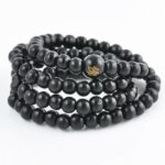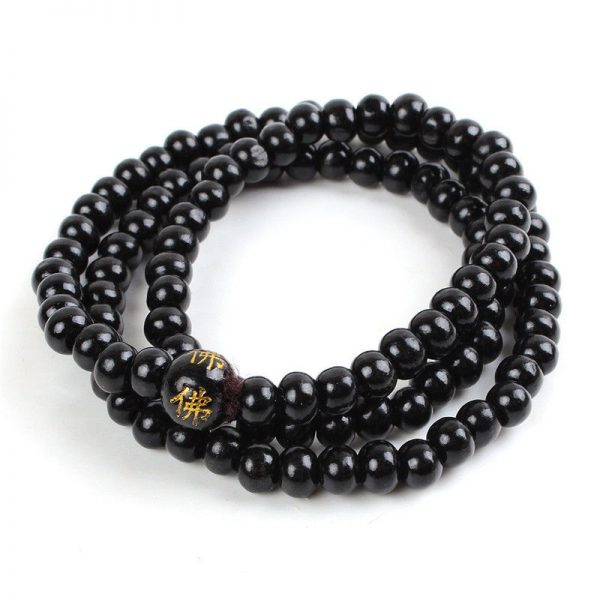 Ανδρικό βραχιόλι διαλογισμού. Κατασκευασμένο από μαύρο σανταλόξυλο, περασμένο σε διπλό ελαστικό ιμάντα, έτσι ώστε να προσαρμόζεται ακριβώς σε όλους τους καρπούς. Το βραχιόλι μπορείτε να το φοράτε τριπλό στον καρπό σας, έχει μήκος 54 εκατοστά.
