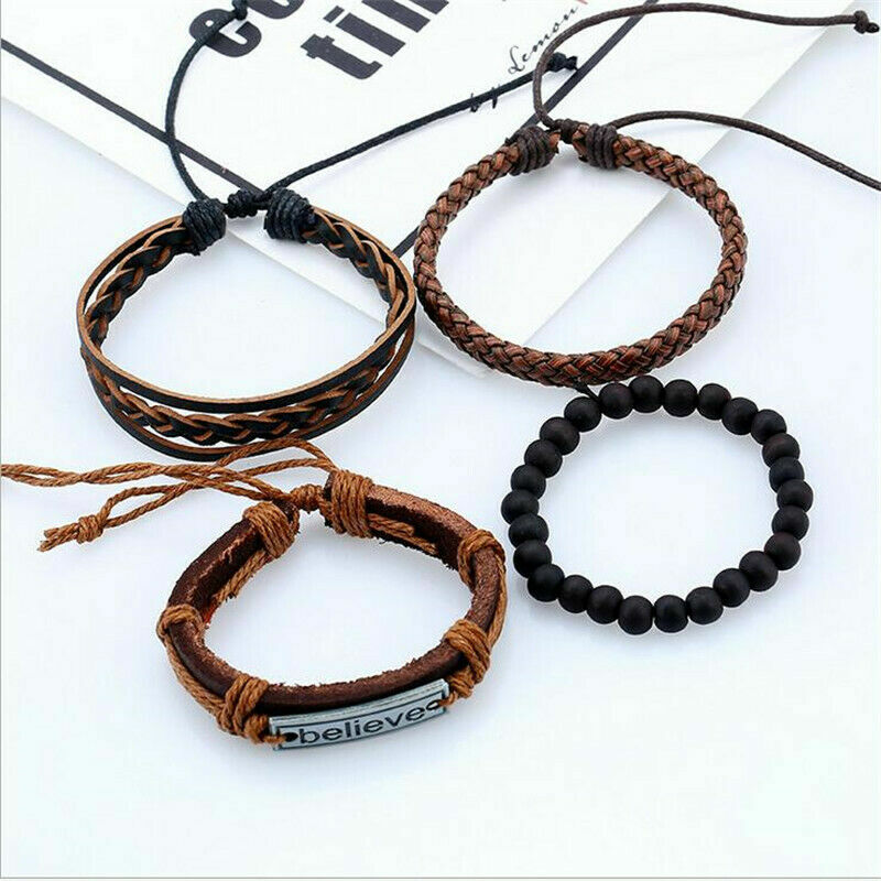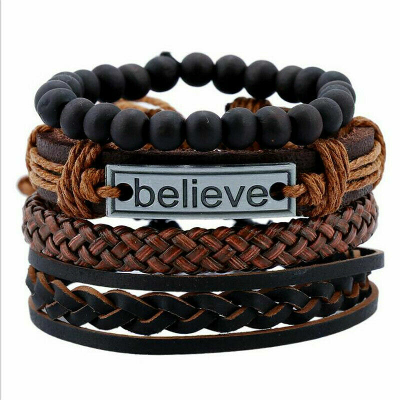 Ανδρικό βραχιόλι με fashion symbol, κατασκευασμένο από ατσάλι και δέρμα αγελάδας! Αποτελείται από 4 ξεχωριστά βραχιόλια και προσαρμόζεται σε όλα τα μεγέθη καρπών!