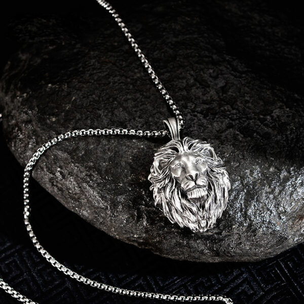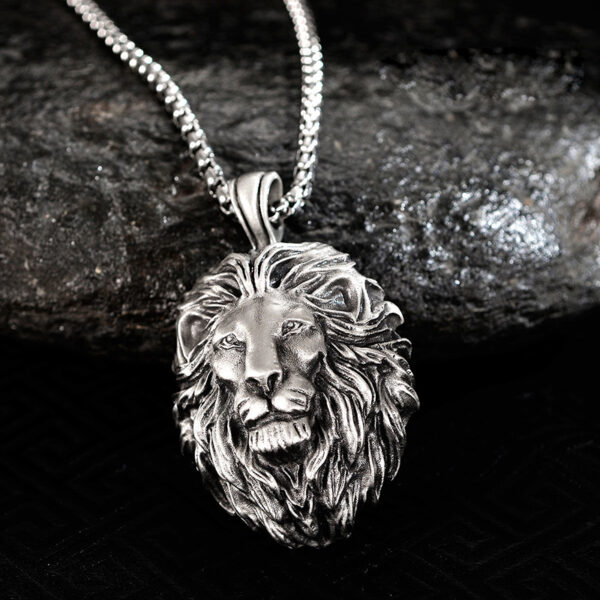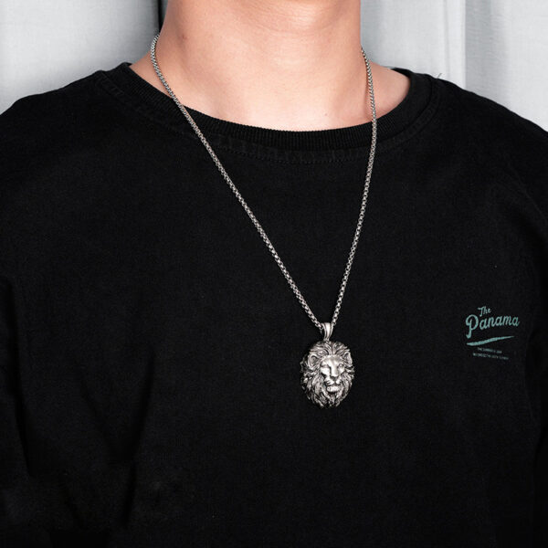 Ανδρικό μενταγιόν κατασκευασμένο από ατσάλι (316L) με μοτίφ το κεφάλι του λέοντα. Συνοδεύεται από αλυσίδα 70 εκατοστών. Σχεδιασμένο από την Betsey Johnson. Το μενταγιόν έχει διαστάσεις 4,1 X 2,8 εκατοστά. Ένα μοντέρνο και εναλλακτικό κόσμημα που γίνεται δώρο στον άνδρα που προτιμά να ξεχωρίζει στιλιστικά.